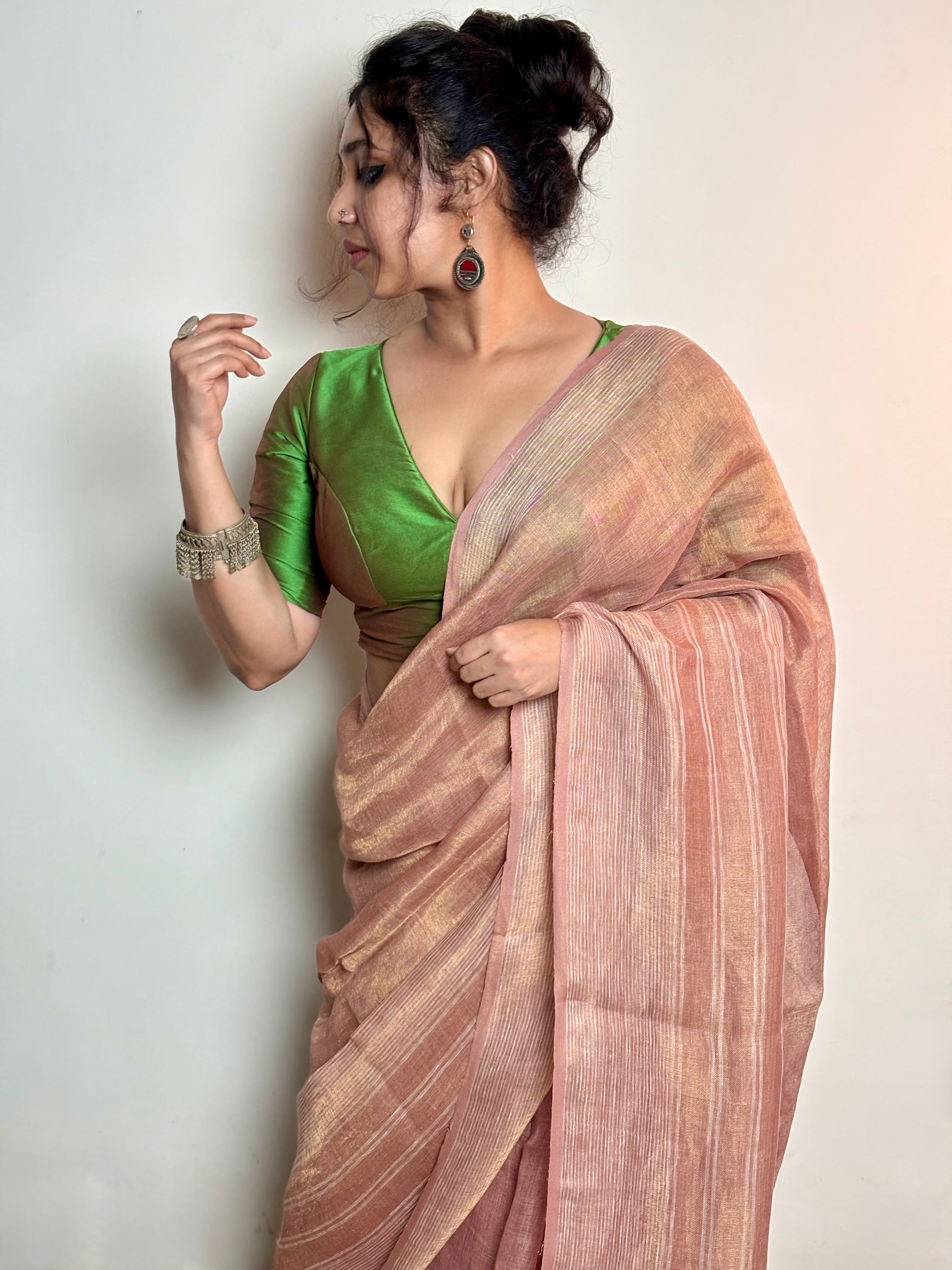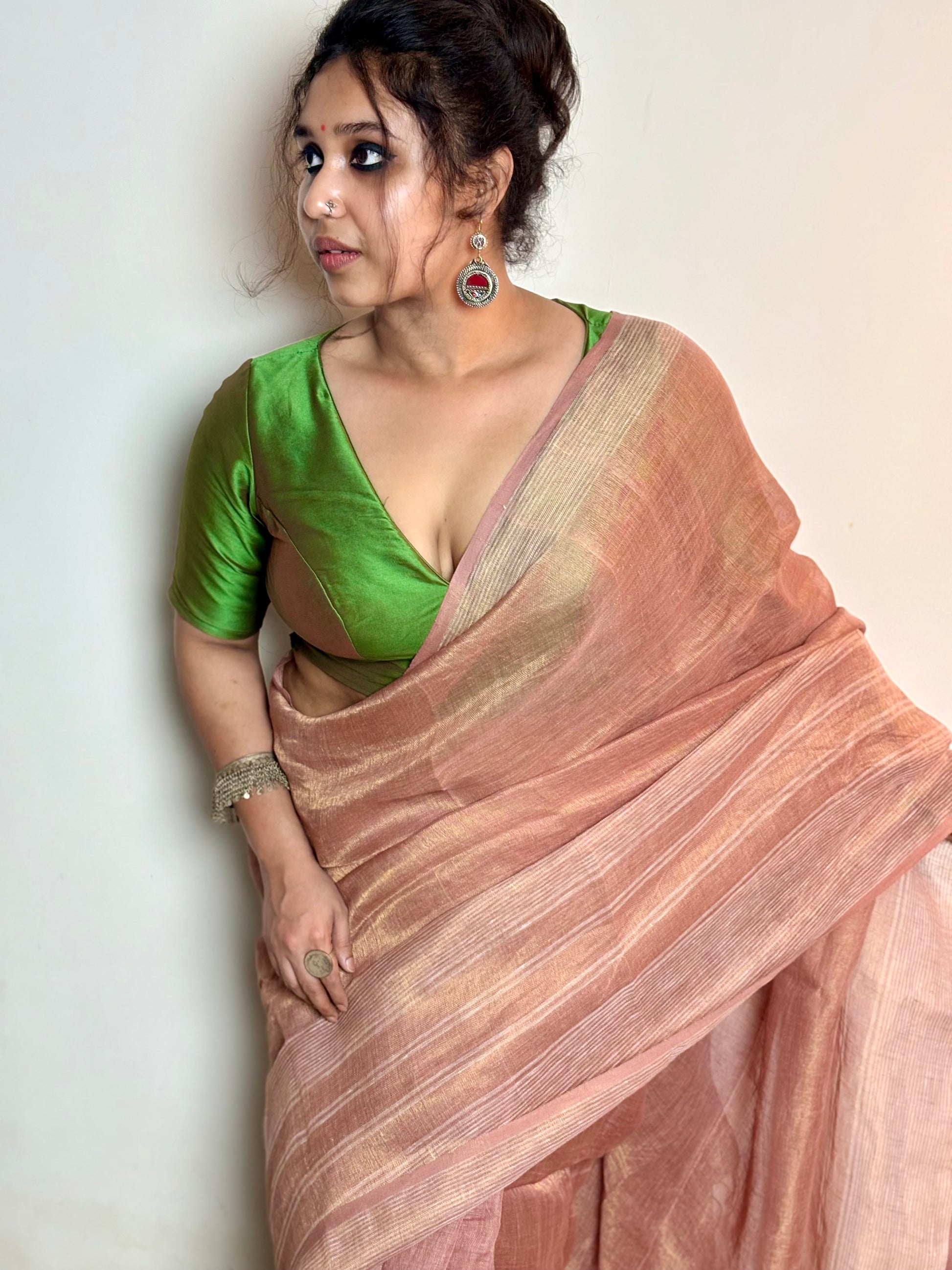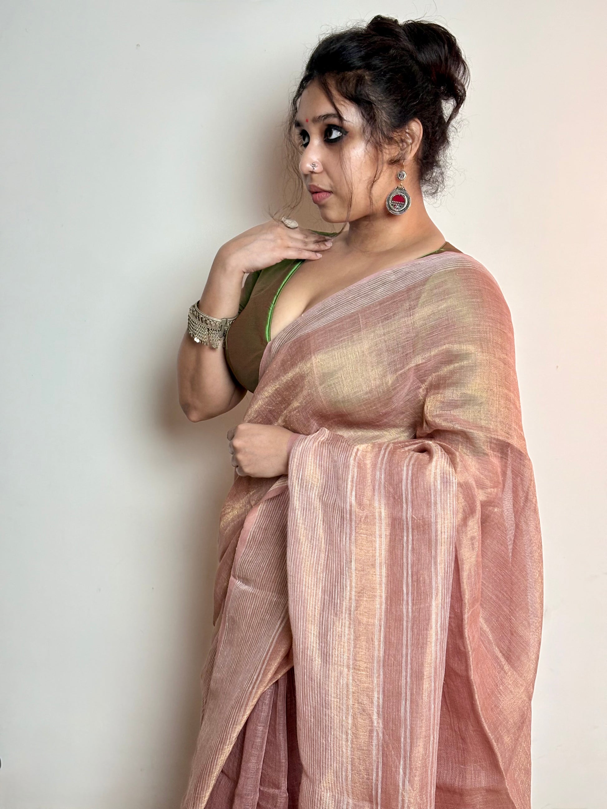 Step into divine elegance with Aphrodite from Fashnet Calcutta's Shine Like a Goddess range. Woven in the finest linen, this saree embodies sensual sophistication with its soft drape, exquisite shimmer, and featherlight comfort. Designed for the modern goddess who embraces her curves with confidence, Aphrodite flows effortlessly around the body- highlighting the waist, elongating the silhouette, and lending an ethereal glow.