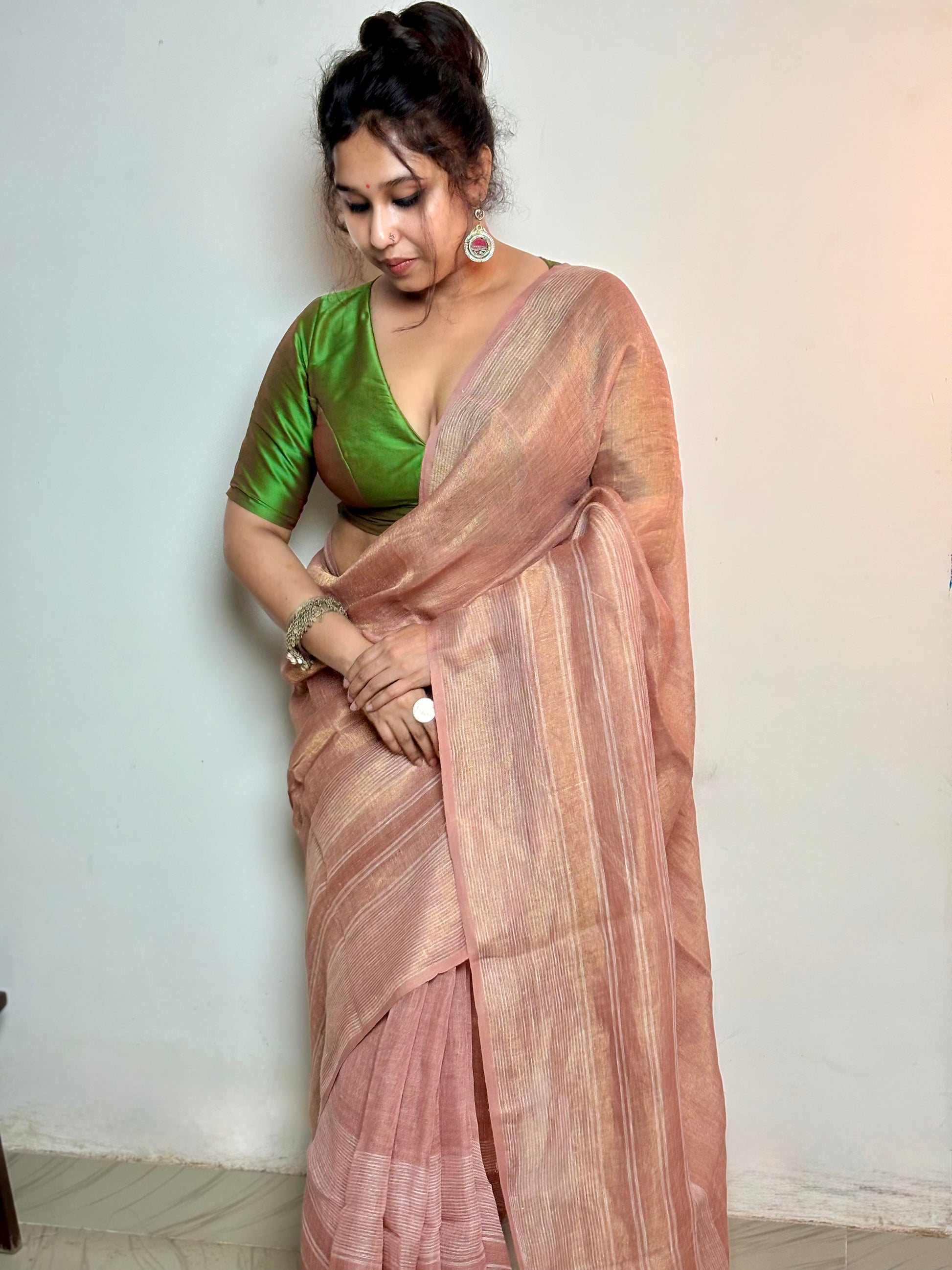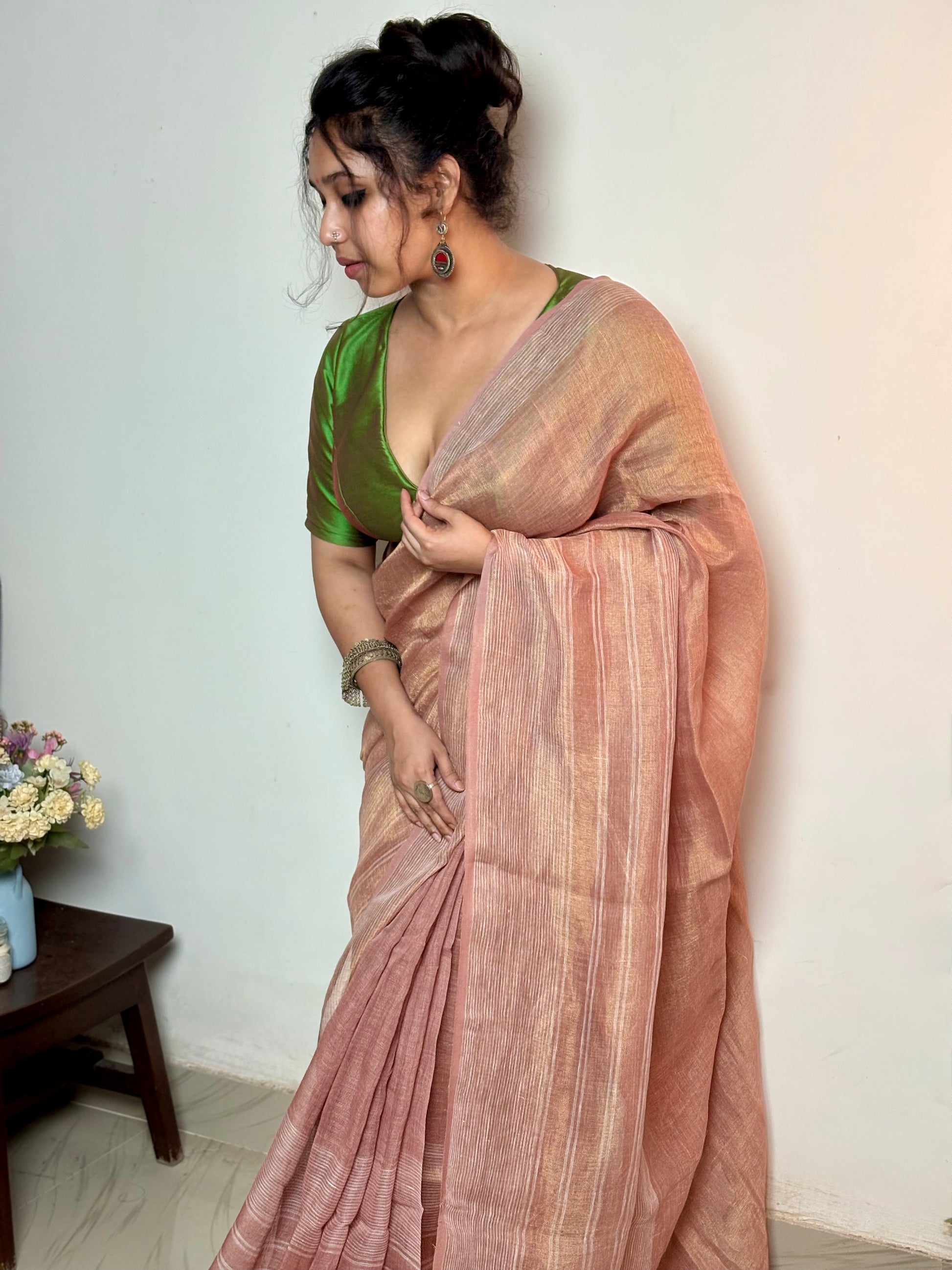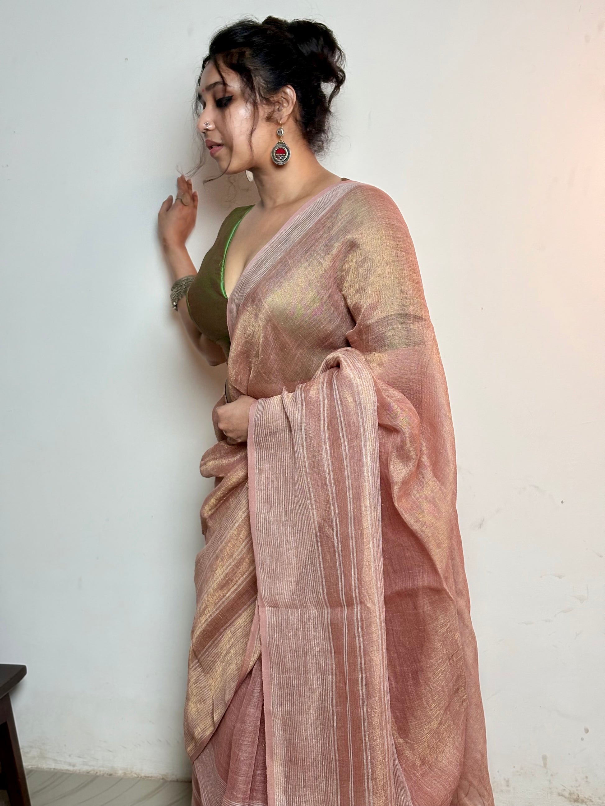 Step into divine elegance with Aphrodite from Fashnet Calcutta's Shine Like a Goddess range. Woven in the finest linen, this saree embodies sensual sophistication with its soft drape, exquisite shimmer, and featherlight comfort. Designed for the modern goddess who embraces her curves with confidence, Aphrodite flows effortlessly around the body- highlighting the waist, elongating the silhouette, and lending an ethereal glow.