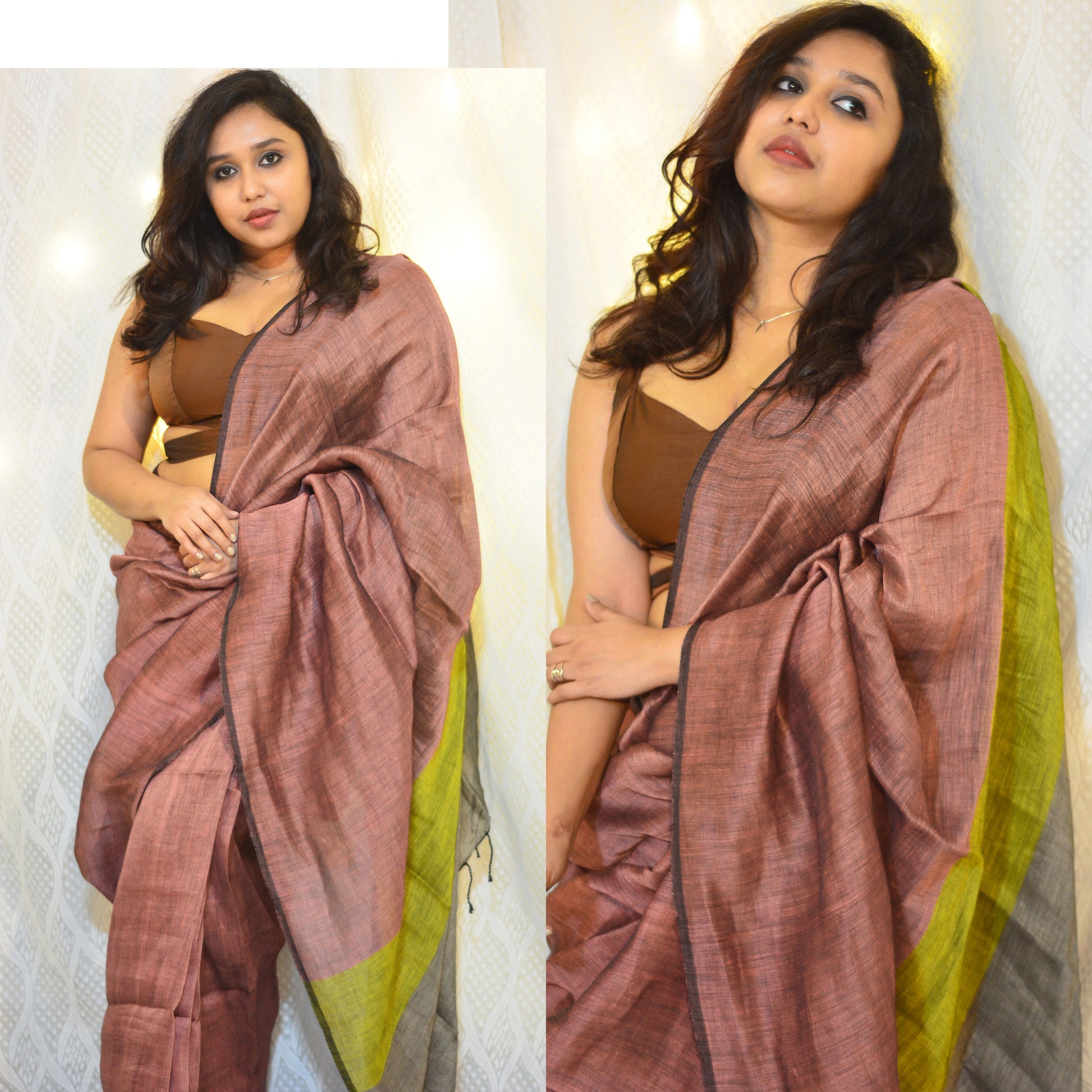 Deep silver for mystery, for danger, for that untouchable elegance. And then—a flash of fiery ochre accents, burning with passion, sizzling with seduction. It’s a saree that teases, that plays, that owns the night and the moment.
